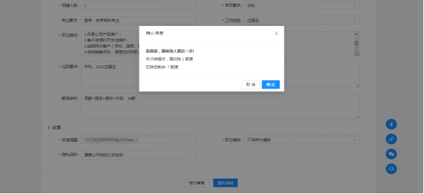 4.发布职位后即为报名完成,待工作人员审核通过后即可全部展示在