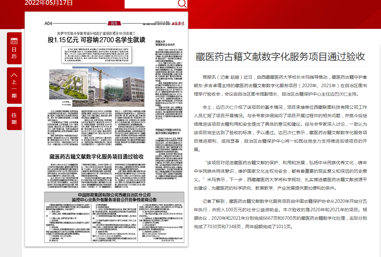 【西藏商报】藏医药古籍文献数字化服务项目通过验收