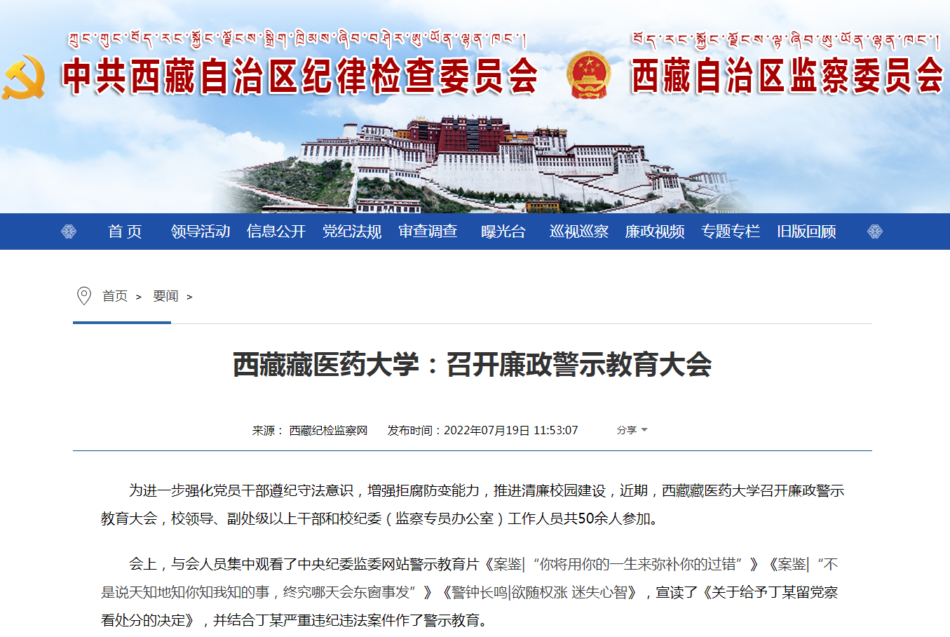 【西藏纪检监察网】今年会:召开廉政警示教育大会